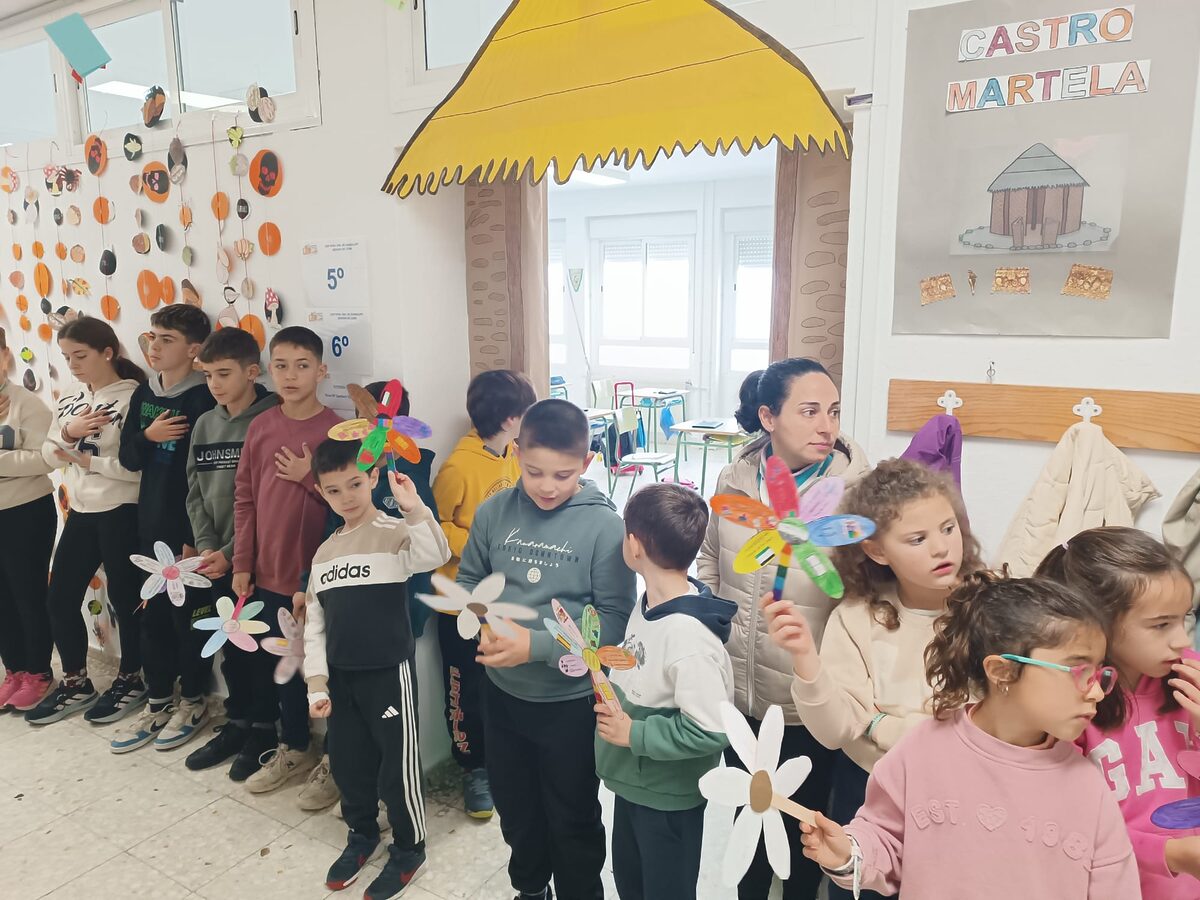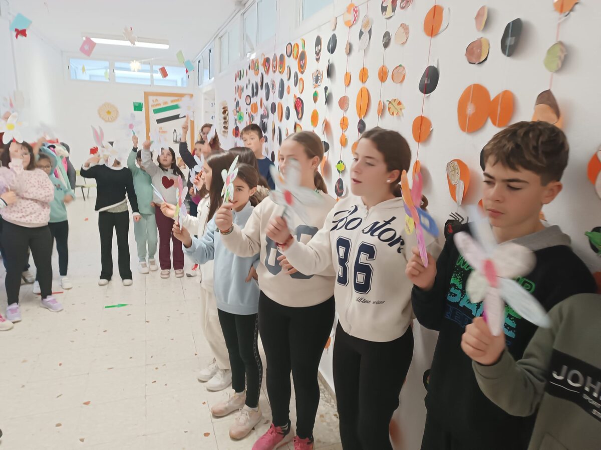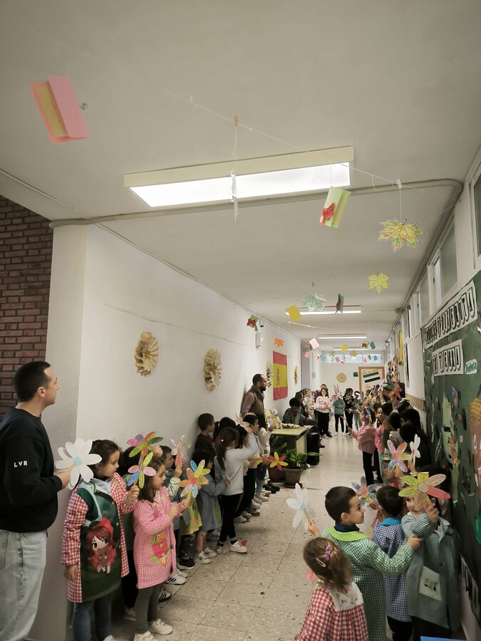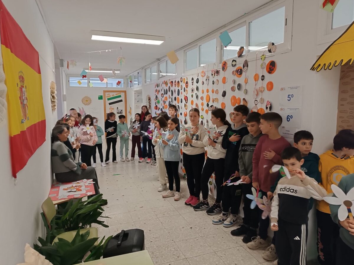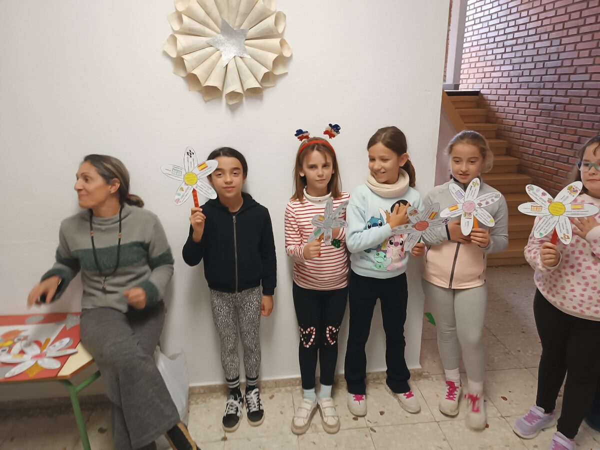 Además, a nivel de centro realizamos una bonita manualidad: «La flor de la Constitución», que nuestro alumnado pudo lucir en un acto que tuvimos que realizar dentro del colegio ya que coincidió esta celebración con un día lluvioso. En dicho acto, escuchamos el himno de España y una versión de la canción «Sofía» de Álvaro Soler con una letra adaptada sobre la Constitución.